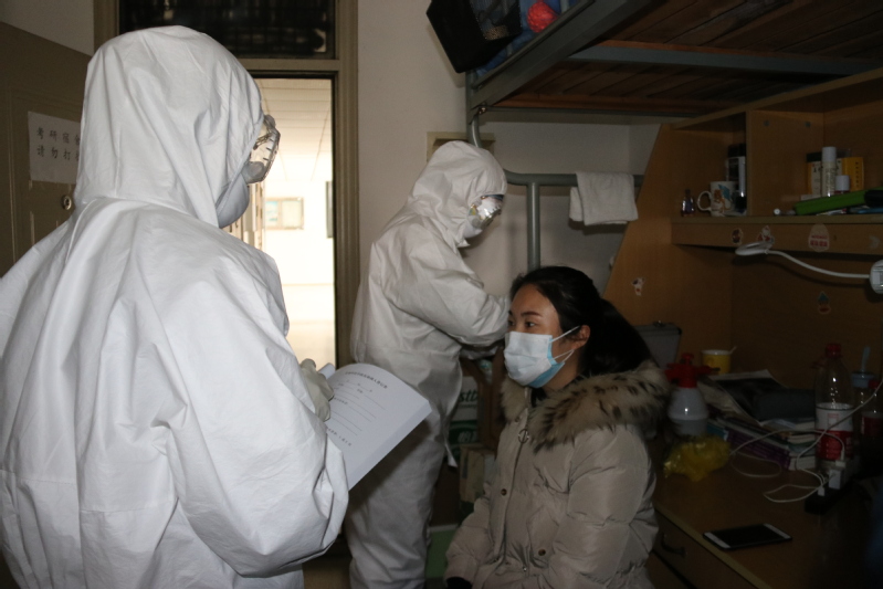 与此同时,学校安保人员到现场维持秩序,划定警戒区域;护士和物业人员对楼栋和宿舍消毒,暂时封存宿舍物品,等待同学A诊断明确后进一步处理。