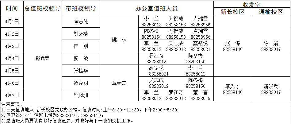 4月1日-4月7日学校总值班安排表