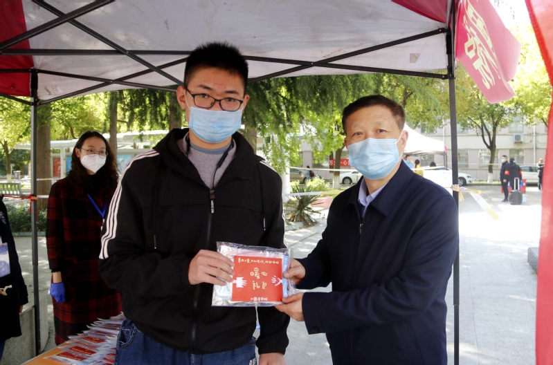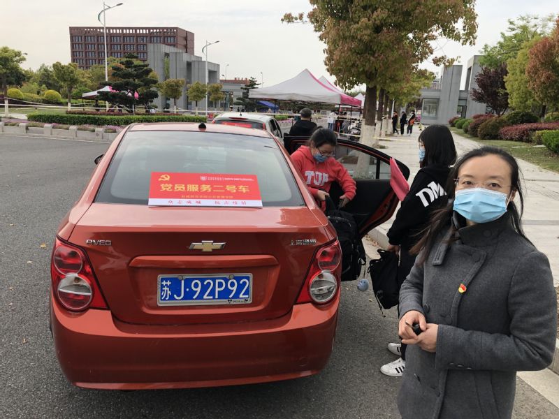 报到现场,来自机关部门和二级学院教职工自发组成的党员志愿服务队格外引人注目。为了更好地迎接学生返校,大家纷纷自愿报名,帮助返校学生做好车站接送、行李搬运、宿舍入住等服务工作。为解决好学生乘坐公共交通工具到校报到“最后一公里”,校团委安排了专车到高铁站接站。此外,学校有关部门和各二级学院为返校学生精心准备了爱心礼包,里面放有口罩、消毒洗手液、就餐劵、温馨提示单等,让返校学子们感到贴心、暖心、安心。