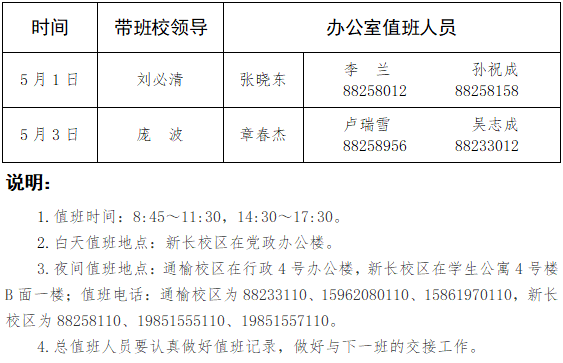 伟德国际1949官网2020年五一总值班安排表