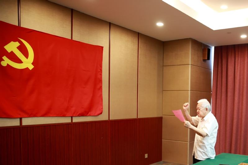 “社会主义事业是光荣伟大的事业。作为一个自觉的革命者,必须放弃个人打算,树立全心全意为人民服务的思想,为在中国建设社会主义而努力奋斗。”95岁的包斌重读入党志愿书,重温入党誓词,心潮澎湃,眼含泪光。