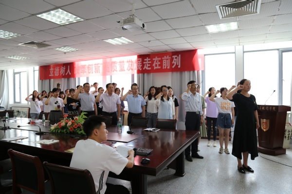 全体师生党员重温了入党誓词,优秀毕业生党员代表进行了汇报发言,向学院赠送了纪念牌匾。城市与规划学院党总支书记冯春芳代表学院向毕业生党员寄语,并赠送党徽和“城市先锋”笔记本,她希望全体毕业生党员坚守初心、勇于担当,在新的工作岗位上传承盐师精神,展示城市先锋风采。
