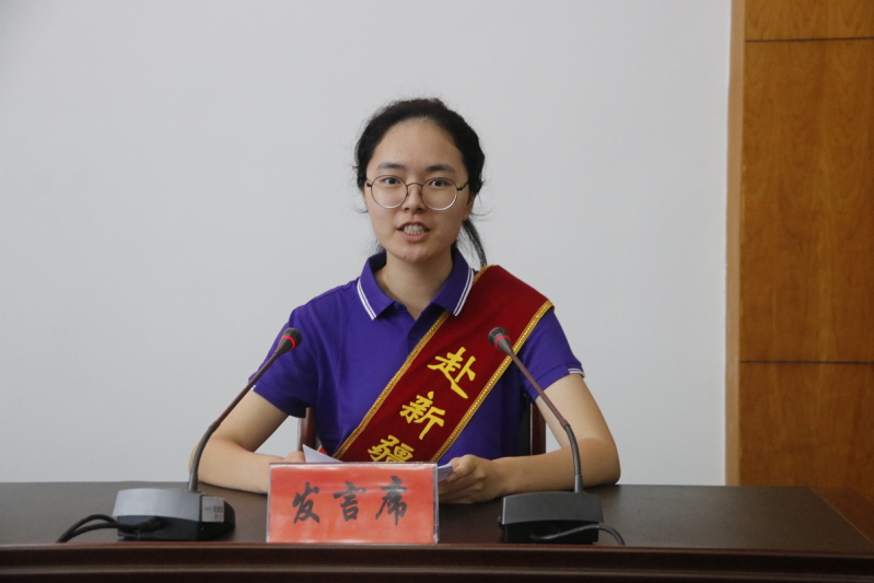 赴新疆实习支教团教师代表、文学院马建高老师,学生代表、法政学院学生周冰怡作会议发言。
