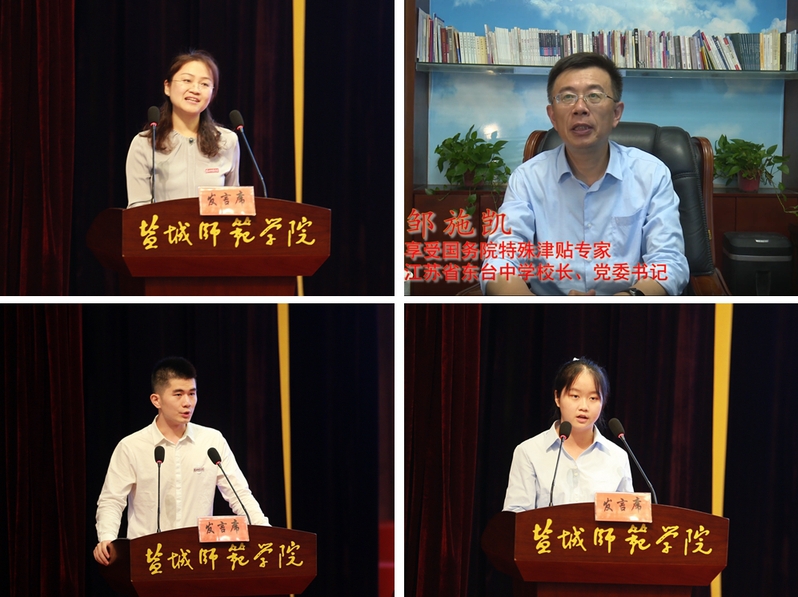 “我愿各位新同学,在盐师的学习中,能够充分地享受学习和探索的乐趣,能够自信地享受质疑和挑战的乐趣,甚至能够颠覆前人的研究成果,创造元知识。我和美丽的盐师,期待见证你们大放光芒!”校友代表、盐城市东台中学校长邹施凯以学长的身份,与新生交流分享人生感悟,祝福学子未来可期。