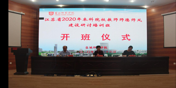 坐标网讯 9月26日上午,法政学院承办的“江苏省2020年本科院校师德师风建设研讨培训班”开班仪式在伟德官网通榆校区国培报告厅举行。党委常委、副校长毕凤珊出席开班仪式并讲话。继续教育学院、法政学院负责人和50位参训人员出席开班仪式。中国矿业大学博导赵海琳教授作为学员代表发言。