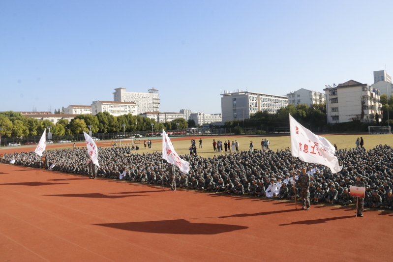 坐标网讯 10月9日上午,伟德国际1949官网2020级新生军训动员大会先后在通榆校区和新长校区田径场举行。学校党委常委、副校长崔刚,党委常委、副校长张桂华,盐城市亭湖区人民武装部部长常红旗上校,南京理工大学人民武装部原部长潘红宁,南京信息职业技术学院基础教育党总支书记、军训团团长倪兵等出席大会。学校人武部部长孔德根主持大会。