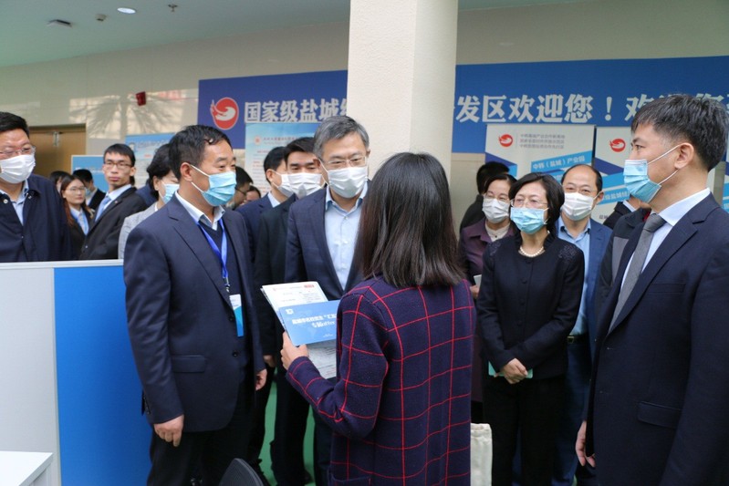 坐标网讯 11月16日上午,盐城市名校优生“汇盐行动”现场招聘会在江苏沿海人才市场顺利举行。伟德官网组织专人参加,现场宣讲伟德官网人才引进相关政策,接受应聘简历。期间,党委书记戴斌荣,党委常委、组织部部长于建江来到现场,并与盐城市委常委、组织部部长、统战部部长勾凤诚等领导进行亲切交流。