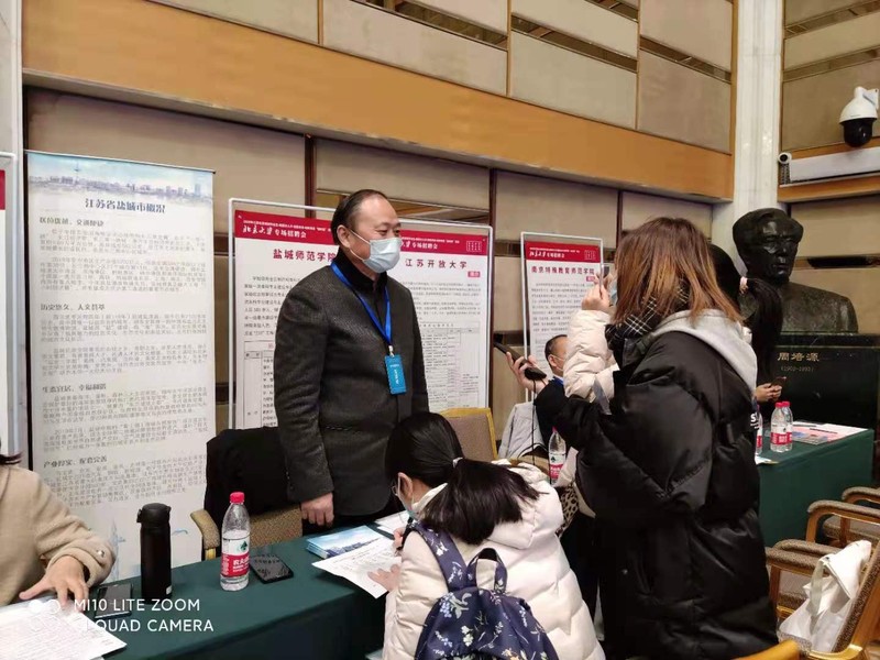 坐标网讯 11月28日,2020年江苏北京高校毕业生·高层次人才·创投资本·创新项目“四对接”活动在京举行。校党委副书记、校长方忠带领人事处负责同志参加北京大学专场招聘会,现场宣讲伟德官网高层次人才引进政策,接收应聘者简历。