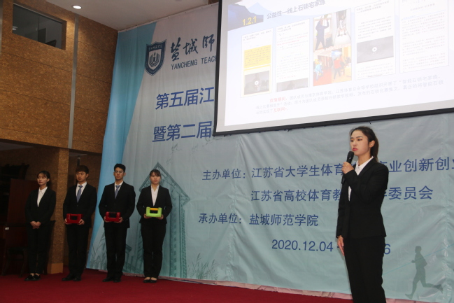 南京体育学院《非遗体育-智能石锁开发与推广》、伟德国际1949官网《民族体育风—智慧体育服务平台》斩获大赛特等奖;伟德国际1949官网《健康活力,三彩盐城—体育研学旅行》、中国矿业大学《向野而生—乡村振兴路上的实干跑者》、苏州大学《新型发令系统的设置与应用》等5个项目荣获一等奖;南京师范大学《领航体育,促进学生体质健康》、苏州科技大学《蚕宝儿童运动速干衣》等7个项目获比赛二等奖;南通大学《星球筑梦,足球强国》等9各项目获三等奖。比赛还设置了优秀奖、“最佳创意奖”、“最佳风采奖”、“最具潜力奖”、“最佳组织奖”。