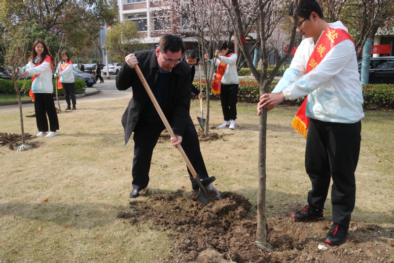 春风吹绿校园,植树添绿正当时,又是一年植树节。3月12日下午2:30,新长校区逸夫楼南绿地一片欢腾,挖坑、施肥、栽树、培土、浇水,30余名师生代表在这里开展义务植树活动。党委书记戴斌荣,党委副书记、校长方忠,党委副书记、纪委书记、省派驻监察专员刘必清,党委副书记于建江,党委常委、副校长庞波等校领导参加了植树活动。