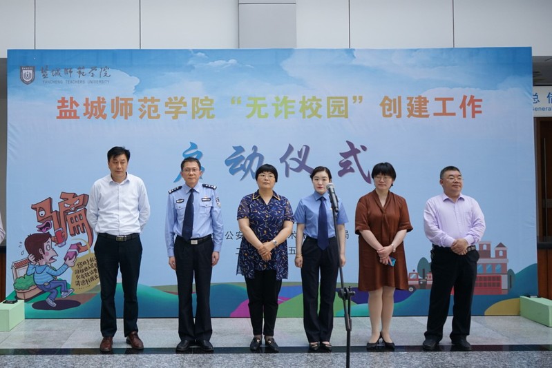 5月28日下午,伟德官网保卫处、学生处联合盐城市公安局经济技术开发区分局,在图书馆共同举行“无诈校园”创建工作启动仪式。学校党委常委、宣传部部长冯永玲,学生处、保卫处负责人,新长校区二级学院学工书记、学工办主任、反诈宣传员和学生代表参会。经济技术开发区公安分局党工委委员、副局长许士才,经济技术开发区检察院检察部主任徐钰洁,经济技术开发区公安分局相关部门负责人、新城派出所负责人参会。启动仪式由学生处副处长刘洋主持。