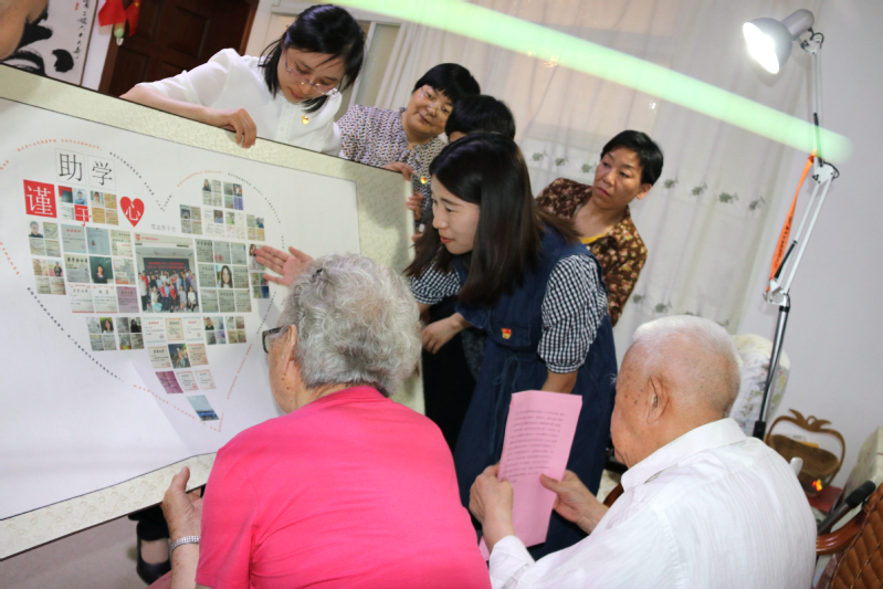文学院2021届毕业生柴世羽代表受资助学生向二老献花,并向二老转交首批受资助的20名学生联名写的感谢信和爱心贴画。“你们的资助让我们减轻了求学过程中的经济压力,也为我们更好地追求理想提供了支持;你们的无私奉献不但给了我们物质上的加持,更让我们受到了精神的洗礼……大学四年里,我们始终以爷爷奶奶为榜样,感谢你们,感恩你们,是你们的大爱给了我们力量和信心,鼓励着我们积极进步,鼓舞着我们勇往直前。”“请爷爷奶奶放心,我们定会不忘初心,坚定信念,做到心中有人民、有社会、有国家。将爷爷奶奶的爱传递下去,在各自的领域中奋勇拼搏,书写人生华章!”首批受资助的20名毕业生在感谢信中深情写道。