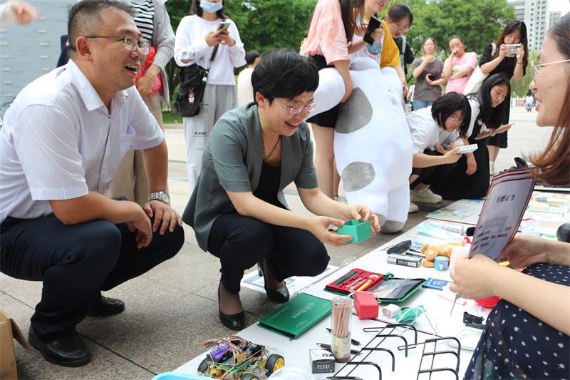 别样毕业季,温情满校园。6月16下午,新长校区公共教学楼西侧广场和通榆校区教学主楼北侧广场上“人气爆棚”,一场由发改办(校友办、教育发展基金会)、文学院、外国语学院、物理与电子工程学院、信息工程学院和商学院组织的毕业生筹办的爱心义卖活动正如火如荼地进行着,校园里暖意涌动,即将毕业的学子们以这样独特的形式向即将离别的母校献礼!