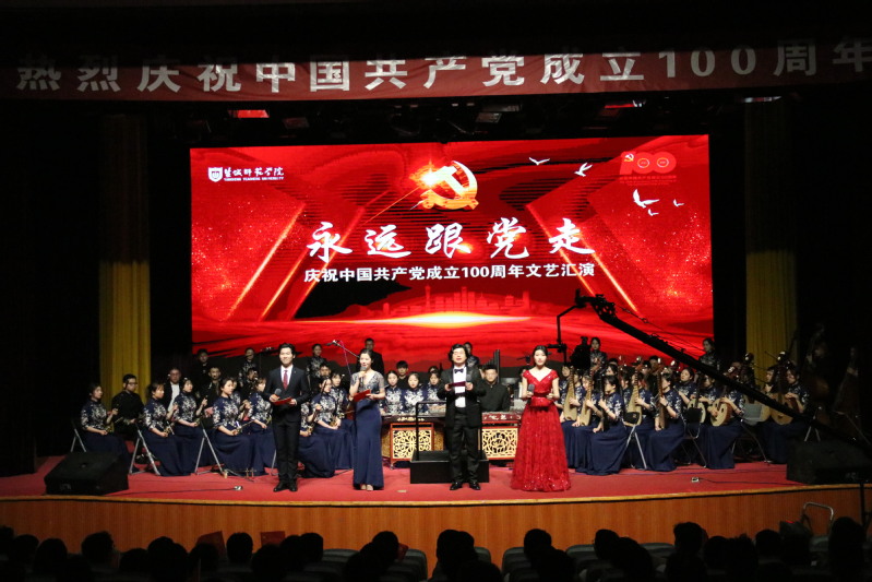 6月24日下午,伟德官网举办“永远跟党走”庆祝中国共产党成立100周年文艺演出。校党委书记戴斌荣,党委副书记、纪委书记、省监委派驻监察专员刘必清,党委副书记于建江,党委常委、副校长毕凤珊等出席活动,与全校线上线下万余师生共上了一堂热烈恢弘、寓意深远、充满红色情怀的文艺党史课。演出用音乐演奏、诗歌朗诵、歌舞表演等形式遥忆那段曲折坎坷的峥嵘岁月,汲取奋勇向前的红色力量,以精心呈现的优秀文艺作品致敬党的百年华诞。