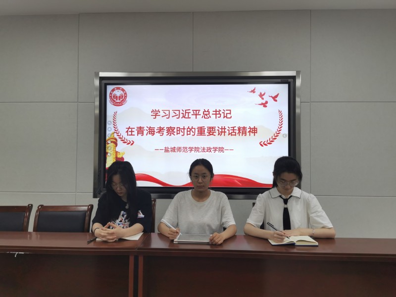 法政学院党员师生通过线上和线下相结合的方式认真贯彻习近平总书记在青海考察时的重要讲话精神,并交流心得感想。法政学院思政185班何佳涵同学表示,“习近平总书记强调,要坚持走出一条具有地方特色的高质量发展之路,我们所在的盐阜大地是一片红色的热土,作为盐师学子,‘铁军精神’是我们融入血液的红色基因,我们应当充分挖掘地方红色资源,探索红色基因,传承红色精神,结合本土特色,让红色文化助力乡村高质量发展,为形成一条特色发展之路贡献青春力量!”