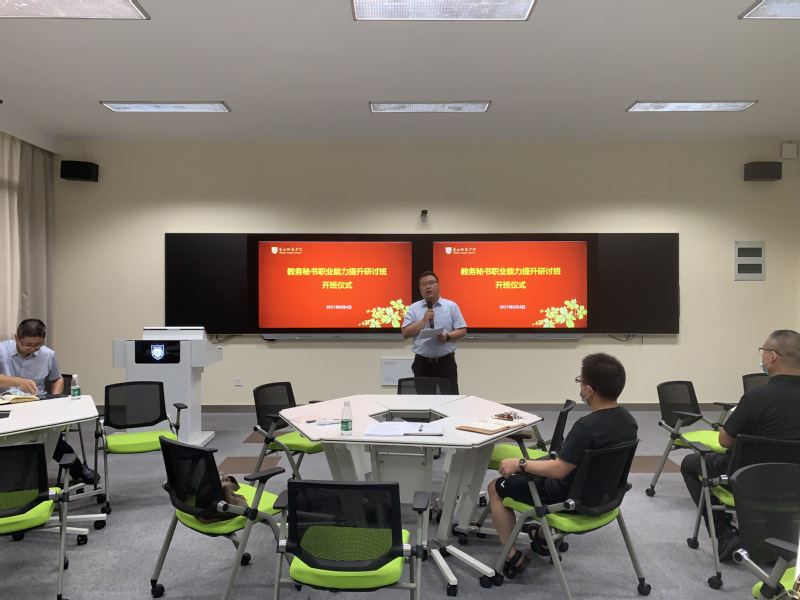 8月4日上午,伟德官网在新长校区未来教室举行教务秘书能力提升研讨班,党委副书记、校长方忠,各二级学院教研办主任、教务秘书以及教务处全体工作人员出席研讨班。研讨班开班仪式由教务处处长岳峰主持。