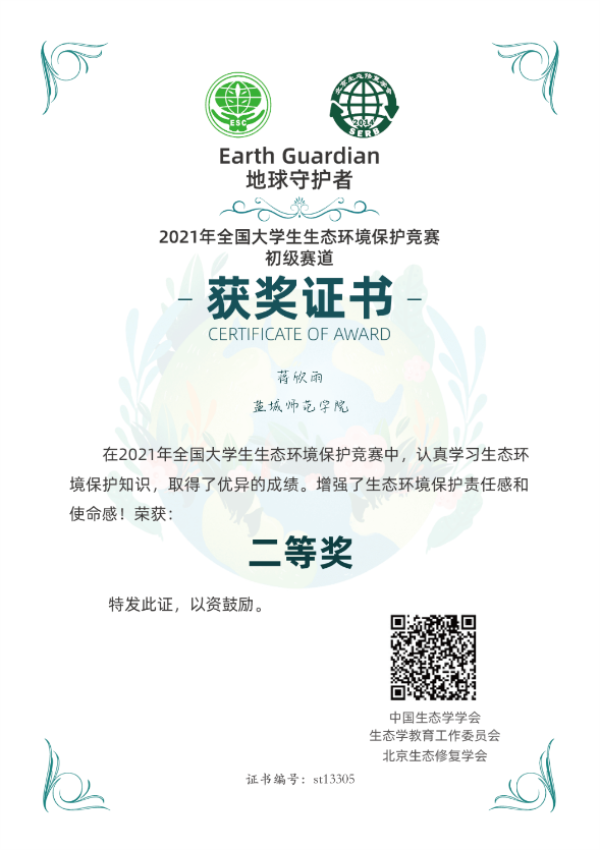 8月31日,由中国生态学会生态学教育工作委员会、北京生态修复学会主办的2021年全国大学生生态环境保护知识竞赛落下帷幕。伟德官网城市与规划学院学生精心准备、沉着应对,最终获得一等奖1项、二等奖11项、三等奖4项。其中,19级地理科学专业李欣彤同学在比赛中脱颖而出,获得一等奖(指导教师团队:李传武、张华兵、刘玉卿、孙小祥、蒋超、徐雅、韩爽、王娟、马随随、王丽丽)。