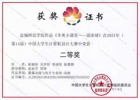 2 | 冬奥小课堂——说冰球 | 陈锦阳、吴玲怡、李瑞彤、陆雅静 | 张祖芹、贾铮 | 信息工程学院 | 国二等奖 |