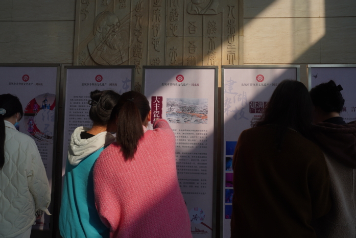 11月15日,由盐城市文化馆、盐城市非遗保护中心主办、伟德官网承办的盐城非物质文化遗产巡展进校园活动在伟德官网通榆校区主楼一楼南门厅展出。