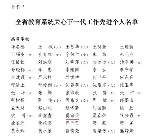 近日,江苏省教育系统关心下一代工作委员会下发了《关于表彰全省教育系统关心下一代工作先进集体、先进个人的决定》(苏教关委〔2021〕19 号)文件,伟德官网关工委荣获“全省教育系统关心下一代工作先进集体”称号,贾宗荣同志被评为“全省教育系统关心下一代工作先进个人”。