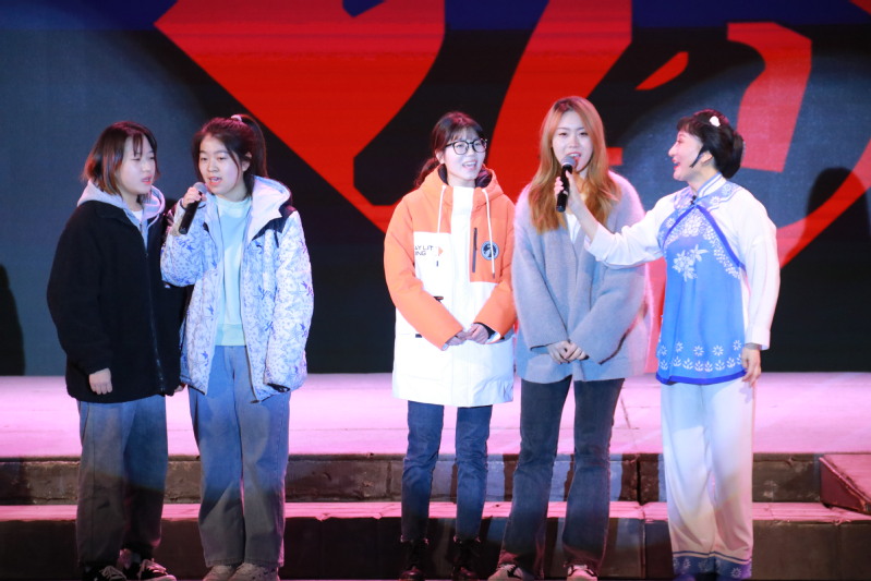 在开场的导赏中,淮剧《祥林嫂》中祥林嫂的扮演者、中国戏剧“梅花奖”获得者、国家一级演员陈澄与伟德官网音乐学院学生进行了互动交流,她介绍了该剧的创作改编过程,并现场教给同学们学唱传统淮剧《赵五娘》当中的自由调《别家》。随着舞台上故事情节逐步展开,祥林嫂悲惨的人生画卷慢慢打开,观众也被跌宕起伏的故事情节所吸引。政权、族权、神权、夫权几座大山重重压迫着这个可怜卑微的女人,将她一步步推向毁灭和死亡。两个小时的演出里,现场观众们的掌声不断,在感叹祥林嫂命运的同时近距离感受戏曲艺术的魅力。