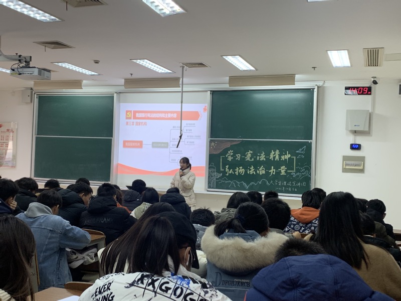马克思主义学院组织开展为期两周的“学宪法精神,做守法青年”国家宪法日主题宣讲活动。校大学生理论宣讲团在各二级学院开展“学习宪法精神,弘扬法治力量”主题宣讲。宣讲前,该院宋敏教授带领宣讲团成员反复打磨宣讲稿,并组织试讲,对宣讲进行全过程精细化指导。同时,各班级以小组研讨方式开展讨论、观看宪法宣传片、分享学习心得。