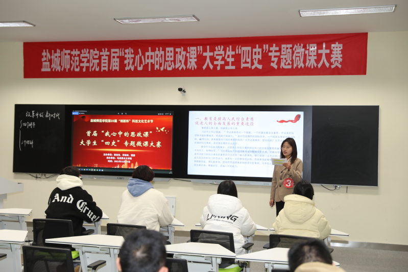 比赛中,选手们引经据典、娓娓道来,来自历史与公共管理学院的陈家伟同学,以“弘扬铁军精神,传承红色基因”为主线,追忆新四军将士冲锋陷阵、出生入死的历史场景,激励当代大学生在铭记历史中守护信仰,汲取奋进力量;来自马克思主义学院的龙希同学,以“弘扬新时代爱国主义精神”为主题,引导青年大学生坚持爱国主义和爱党、爱社会主义的统一,引导大学生把青春绽放在祖国最需要的地方,以实际行动践行新时代爱国主义精神。参赛选手激情昂扬,在场听众掌声不断,一场场立意深刻、主题鲜明的思政微课让人影响深刻。