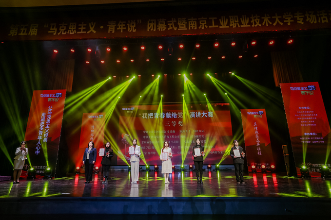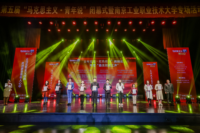 12月24日下午,由中共江苏省委宣传部、中共江苏省委省级机关工委、中共江苏省委教育工委、共青团江苏省委、新华报业传媒集团共同主办,“学习强国”江苏学习平台、中国江苏网新江苏客户端承办的江苏省第五届 “马克思主义·青年说”闭幕式在南京工业职业技术大学大学生创新发展中心剧场举行。