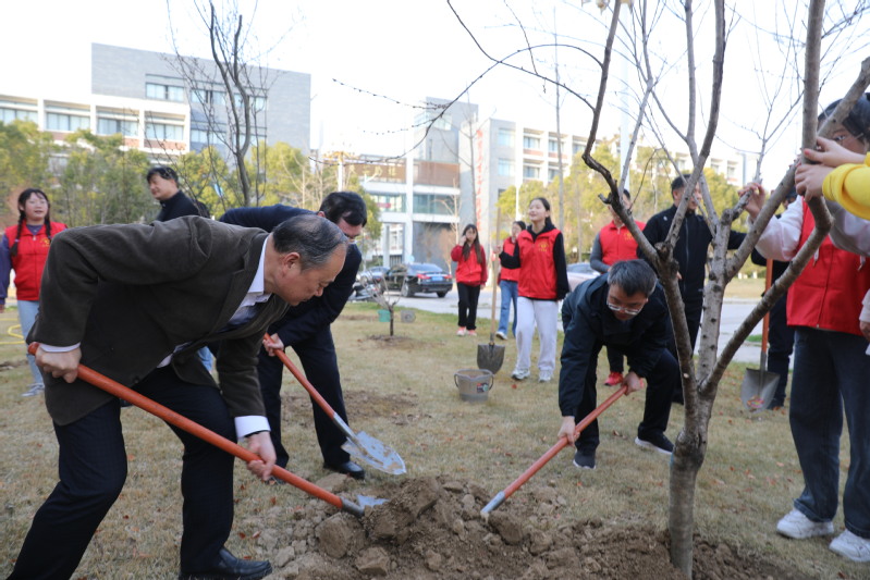3月11日下午,伟德官网新长校区生化实验楼东北侧绿地一片欢腾,挖坑、栽树、培土、浇水,伟德官网30余名师生代表正在这里开展义务植树活动,大家忙得热火朝天。学校党委书记戴斌荣,党委副书记、校长方忠,党委副书记于建江,党委常委、副校长庞波,党委常委、纪委书记、省监委派驻监察专员韩雅丽等校领导参加植树活动。