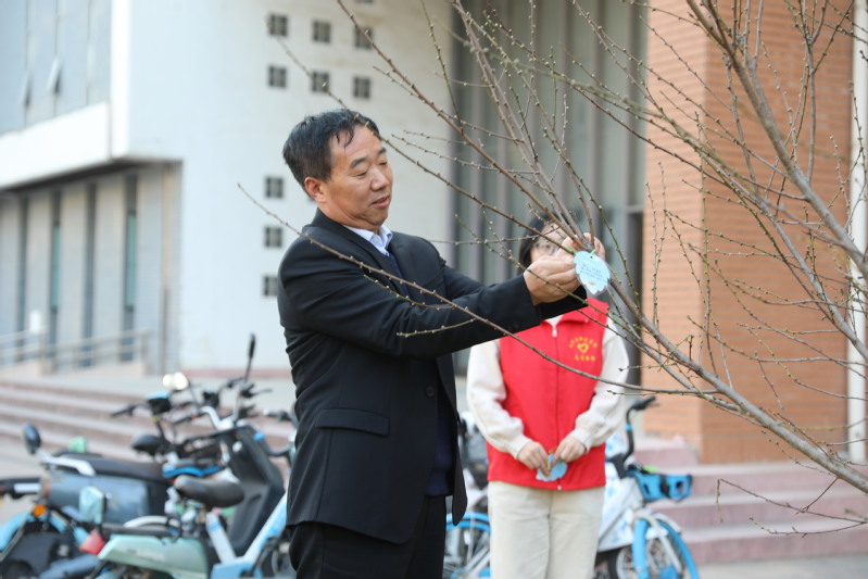 在植树过程中,戴斌荣、方忠等校领导与师生亲切交谈,当了解到参加植树活动的都是城市与规划学院“王强班”创建班级的大一新生时,校领导鼓励同学们用自己的辛勤劳动践行“两山”理论,与自己亲手栽下的树苗共同成长,共同进步,成长为对国家、对社会有用的栋梁之才。师生还一起给刚种下的小树挂上祝福卡片,共同寄托师生“播种绿色,桃李芬芳”的美好愿望。