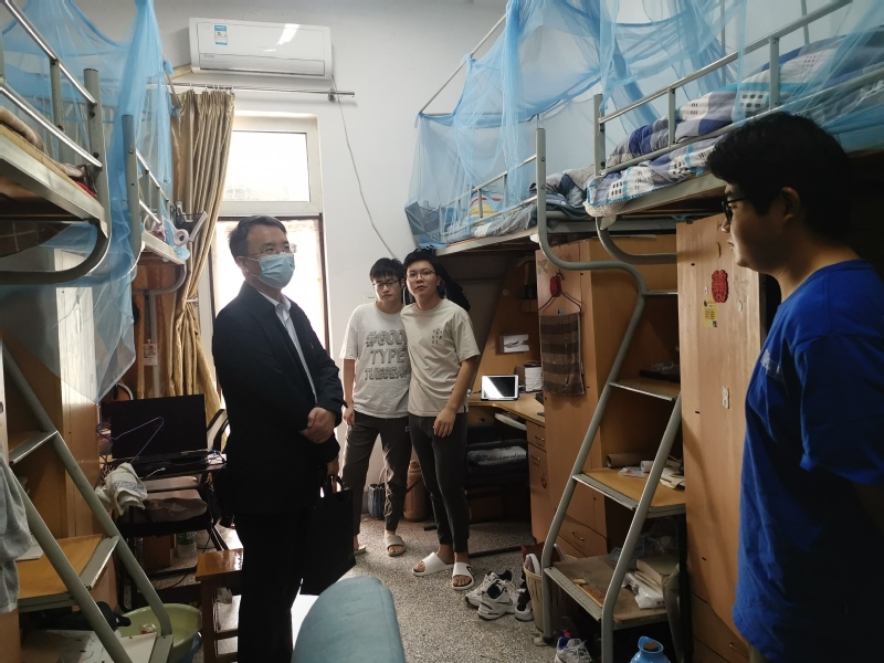 近日,学校党委书记戴斌荣,党委副书记于建江,党委常委、副校长庞波、汤克明、毕凤珊先后深入学生宿舍,专题调研指导2022届毕业生就业工作。