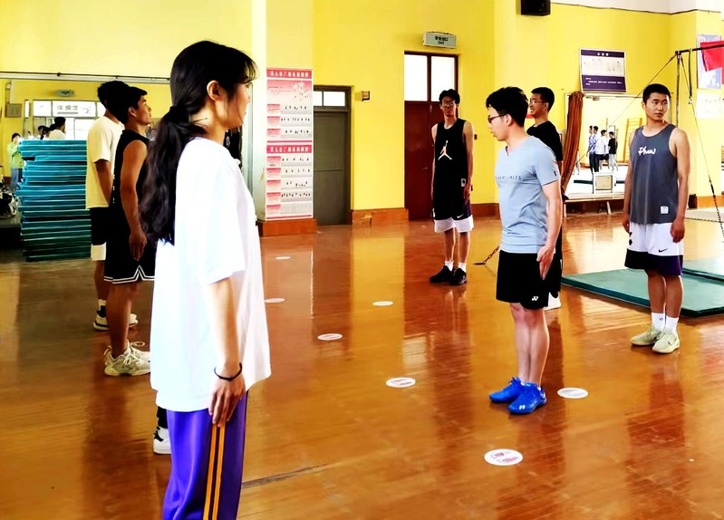 一是协助教师专业术科教学,做好“小助教”。封校以来,获省师范生基本功大赛一等奖的牛向可同学主动协助汪庆波老师,面向2020级学生开展口令、队列队形、广播操、武术操的指导和训练。其他的参赛选手也被一些术科老师邀请担任“小助教”。这种做法有效地克服了术科教师远程教学的不便,学生现场的动作出现问题可以通过“小助教”们进行纠正和指导。