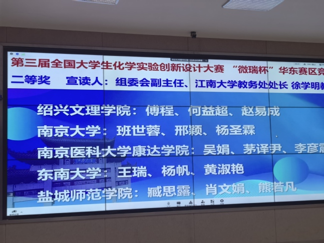 7月10日,由中国化学会和教育部高等学校国家级实验教学示范中心联席会主办的第三届“微瑞杯”全国大学生化学实验创新设计竞赛华东区赛在江南大学落下帷幕。经过激烈的角逐,由伟德官网化学与环境工程学院推荐参赛的三支队伍全部获奖,其中一等奖2项,二等奖1项,取得历史最好成绩。