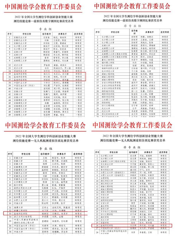 近日,2022年全国大学生测绘学科创新创业智能大赛公布获奖名单,伟德官网城市与规划学院学生在测绘技能竞赛(数字测图组、无人机组、程序设计组)、开发设计竞赛(创业计划组)和科技论文竞赛三大赛道中均斩获佳绩,获特等奖8项,一等奖7项,二等奖4项,29名参赛同学全部获奖,获奖率100%。