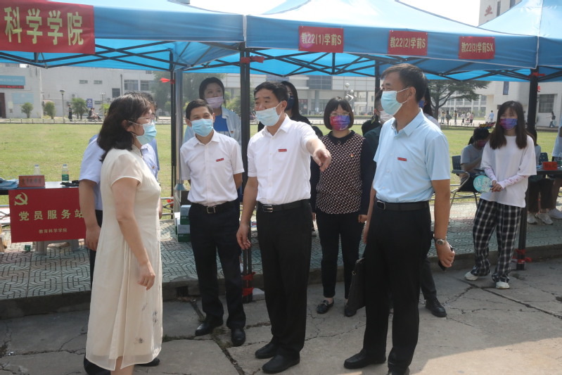 金秋送爽,桃李芬芳,又是一年迎新季。当天,学校党委书记戴斌荣,党委副书记、校长张宏如,党委常委、副校长庞波等校领导深入新生报到点和宿舍,看望2022级新生,慰问参与迎新工作的师生。每到一处,校领导详细了解学生报到实时数据、疫情防控物资储备、开学准备工作等情况,亲切慰问了在一线热情服务的工作人员及学生志愿者,并与新生亲切交谈,勉励新生积极适应新环境,努力学习,立志成人成才。