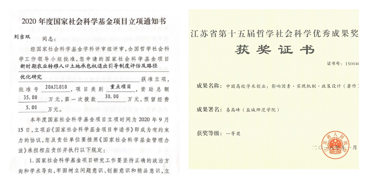 四年来,学院聚焦高层次项目,取得历史性好成绩。承担国家级项目7项,其中国家社会科学基金重点课题2项,省部级项目17项,市厅级项目118项,获得纵向科研经费275万元。持续推进科研素养提升工程,科研获奖取得重大突破。充分利用“黄海论坛”“商学院大讲堂”“学术月”活动等科研交流平台,开展青年学者学术沙龙、名家热点问题讲坛、学术研究方法指导等系列学术交流活动,营造学术氛围。出版专著32部,其中权威出版社15部。发表核心期刊论文119篇,其中SSCI & SCI论文24篇,CSSCI论文58篇。荣获江苏省第十五届哲学社会科学优秀成果奖一等奖1项,市厅级奖19项,其中特等奖1项、一等奖3项。不断强化重点学科建设,全力做好江苏省重点建设学科应用经济学建设工作。围绕“沿海开发与可持续发展领域”“沿海金融支持与资本市场领域”“沿海新兴产业与商业模式”“沿海人口经济与人才发展领域”的四个方向,应用经济学顺利通过“十三五”省重点建设学科考核。强化制度建设,科研团队建设影响不断增强。学院积极推行科研团队带头人负责制。结合学院科研事业发展规划,成立“数字经济与战略管理研究中心”“农业转移人口制度创新研究中心”“中小企业转型发展研究中心”“区域经济与企业竞争力研究中心”四个科学研究团队。获批校2020年科研创新团队。积极参加全国师范大学经济与管理学院(商学院)院长论坛暨全国师范大学经管学科青年学者学术论坛、中国工商管理研究年度高端论坛和中国工商管理教育院长论坛等全国性会议,扩大学院科研社会影响力。全面推进社会服务和培训工作,重点打造盐城市新型重点智库中韩(盐城)产业园创新发展研究院和荷兰花海创新研究院,依托平台服务区域经济社会发展,发表决策咨询报告31篇,12篇获得市级及以上领导批示,横向科研快速增长,获得横向经费2221万元。连续举办4届江苏省盐城市中小企业管理培训班,惠及1000多名中小企业主。