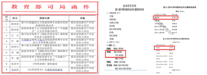 守正创新,人才培养效果明显。学院高度重视教学质量工程,重点围绕“教学比赛+学生竞赛+课程建设+教改课题”四个方面,根据系科特点进行资源整合和专业协调,形成“学生忙起来、教师强起来、管理严起来、效果实起来”的新局面。通过智慧教学培训和课程思政引导,商学院教师在校中青年教师会讲比赛中连续3年荣获一等奖,且在江苏省微课比赛评选中多次拔得头筹。商学院扎实推进“以赛促进、以赛促学”,结合相关课程,着力开展专业技能竞赛,不仅在学科竞赛A类赛事中硕果连连(全国“互联网+”大学生创新创业竞赛国赛二等奖,全国“创青春”比赛银奖,全国市场调查与预测大赛省赛一等奖等),在由共青团中央青年发展部、全国专业教育指导委员会等承办的财经类比赛中多次荣获全国一等奖。商学院始终坚持以一流课程建设为核心锻造金课、造浓氛围、激发学生。2021年,在校一流课程培育立项基础上,《人力资源管理》《财务报表分析》《管理学》3门课程获批首届省级一流课程。此外,积极响应开放课程建设号召,所有系科全面开展线上线下混合教学,满足学生课内课外双重需要。为深度加强产教融合、校企合作,2018年教育部开展首批教育部产学研协同育人项目申报至今,学院共计获批超20项。