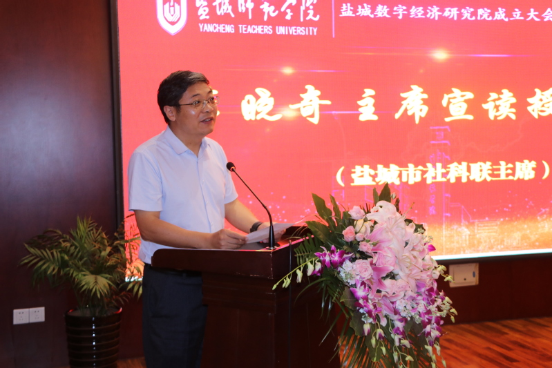 9月22日下午,盐城数字经济研究院成立大会在伟德国际1949官网通榆校区举行。盐城市社科联主席李晓奇,盐城市工业和信息化局局长臧冲,学校党委副书记、校长张宏如,盐城工学院党委副书记薛浩,盐城工业职业技术学院副校长孙卫芳,驻盐高校社科处与盐城市级智库负责人出席大会。学校党委副书记于建江主持大会。