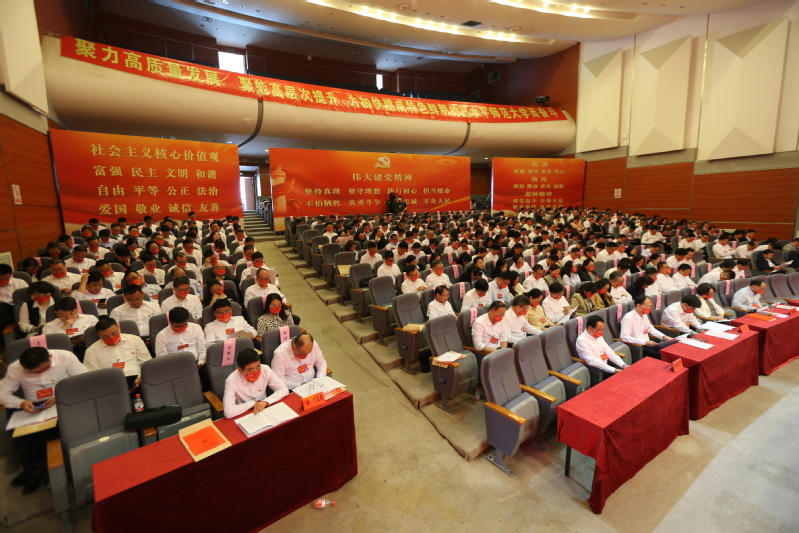 学校党委书记戴斌荣同志致开幕词。他表示,第三次党代会召开以来,学校党委坚持以习近平新时代中国特色社会主义思想为指导,深入贯彻落实党的十九大和十九届历次全会精神,坚持社会主义办学方向,全面贯彻落实党的教育方针,落实立德树人根本任务,围绕“建设特色鲜明的高水平师范大学”的奋斗目标,团结带领全体党员和师生员工,抢抓机遇,奋力拼搏,学校党的建设和各项事业发展成效显著。他指出,本次大会是在全国上下喜迎党的二十大、学校申硕工作全力冲刺的关键时刻召开的一次十分重要的会议。他希望全体代表以高度的政治责任感和历史使命感,认真履行代表职责,庄严行使民主权利,圆满完成大会的各项任务,努力把本次大会开成一个民主团结、求真务实的大会。