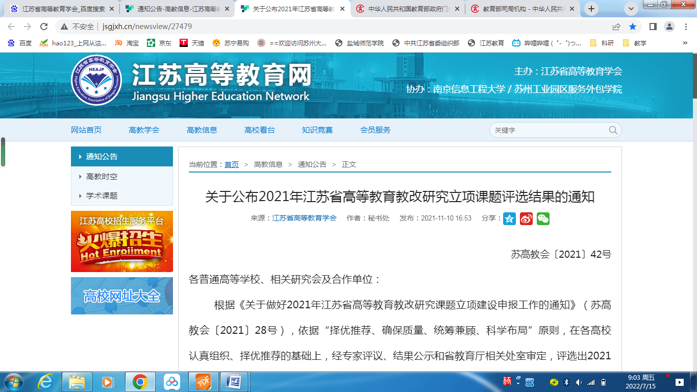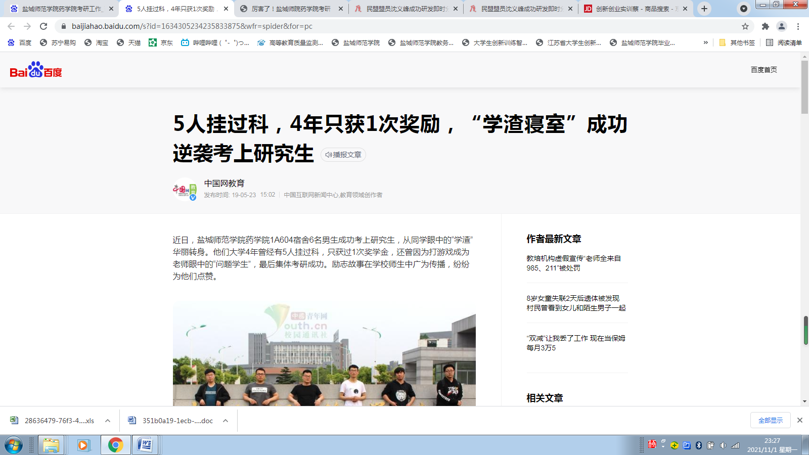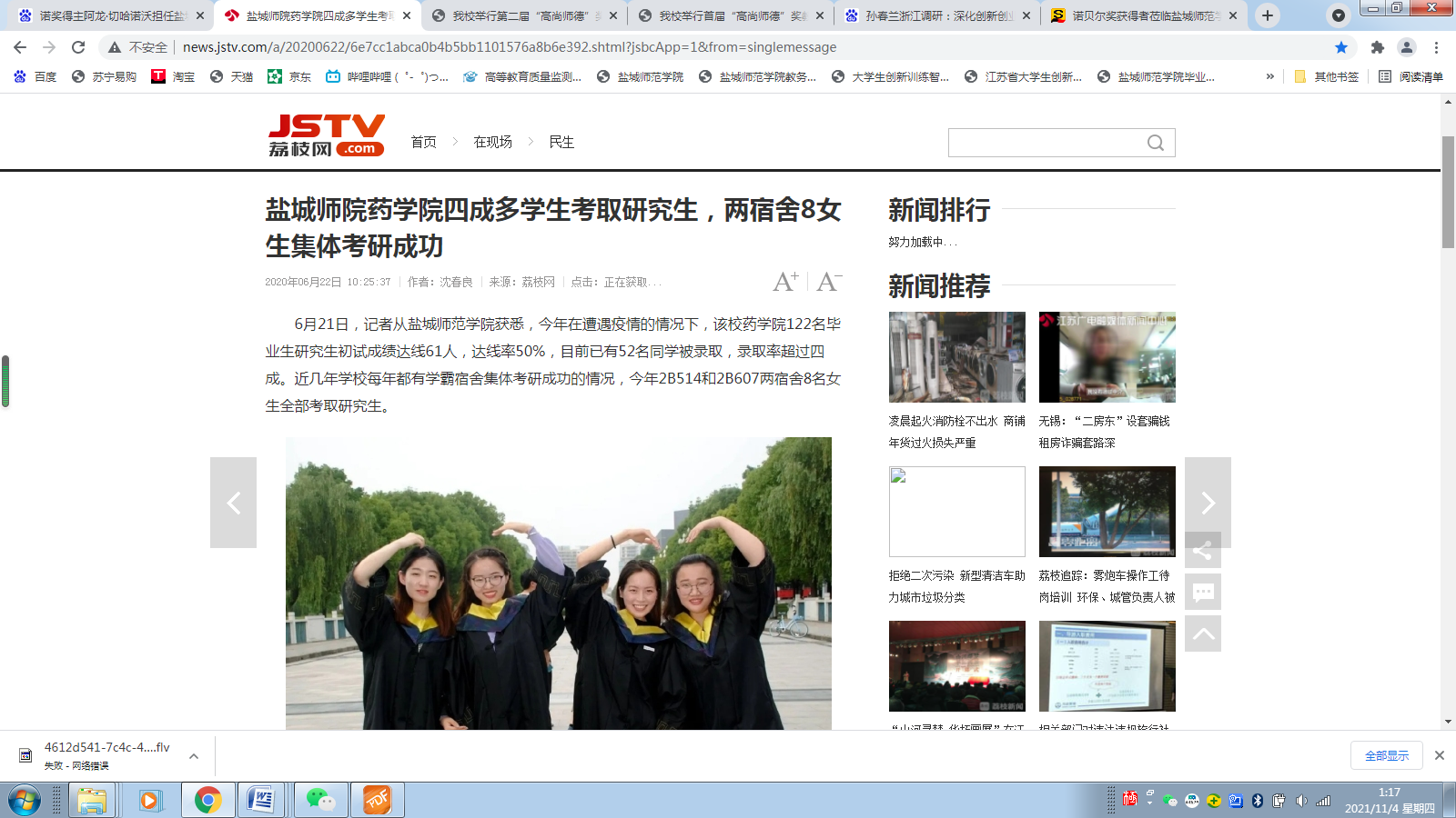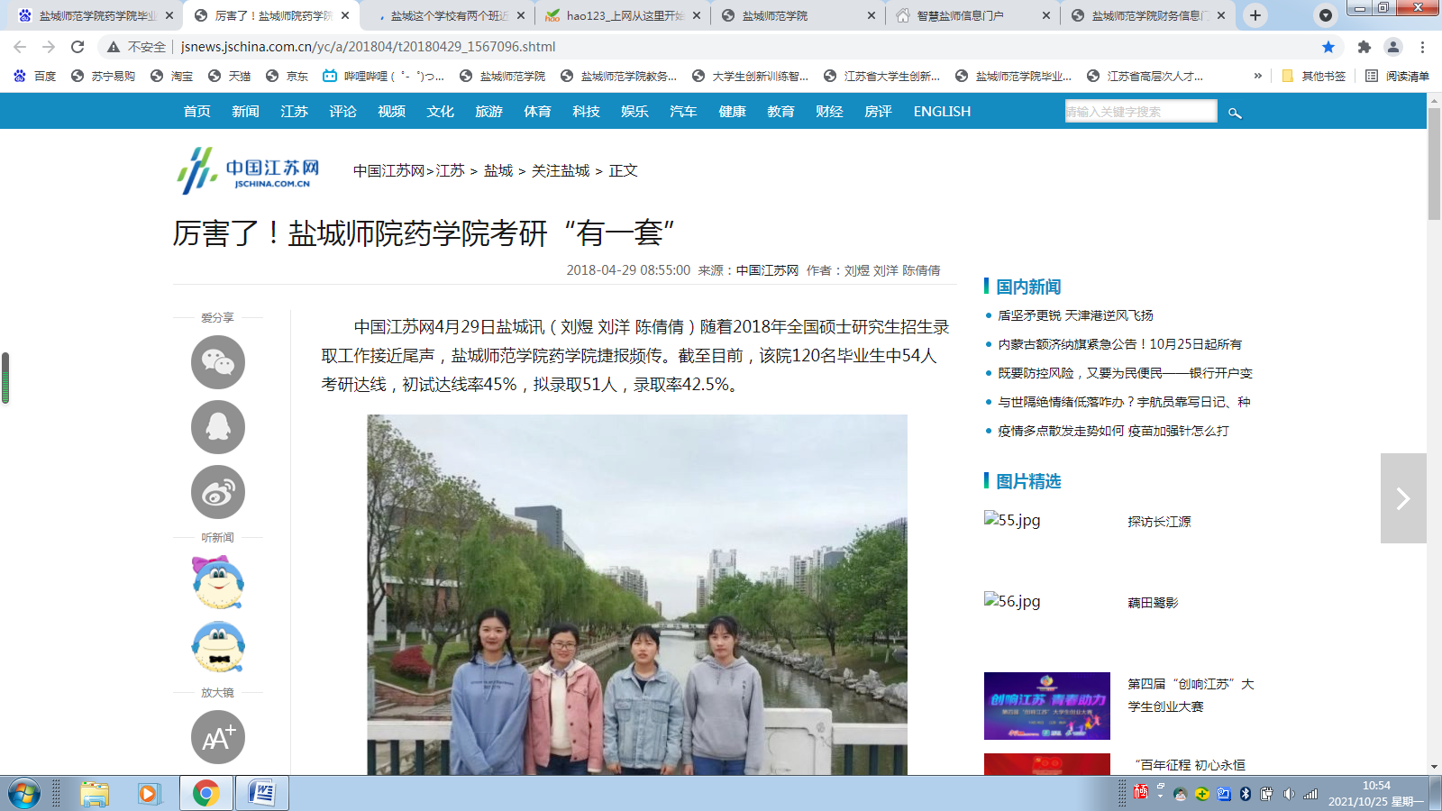 实施校校、校企联动,积极为学生搭建考研与高质量就业平台,切实提高人才培养质量。毕业生平均考研录取率超过30%,一批毕业生进入南京大学、东南大学、中国药科大学等名校深造。学院考研工作被中国教育网、中国青年网等十多家媒体报道,产生了广泛的社会影响。毕业生就业率稳定在98%以上,一批毕业生进入扬子江药业、恒瑞医药、阿斯利康制药等中国医药工业百强企业工作。