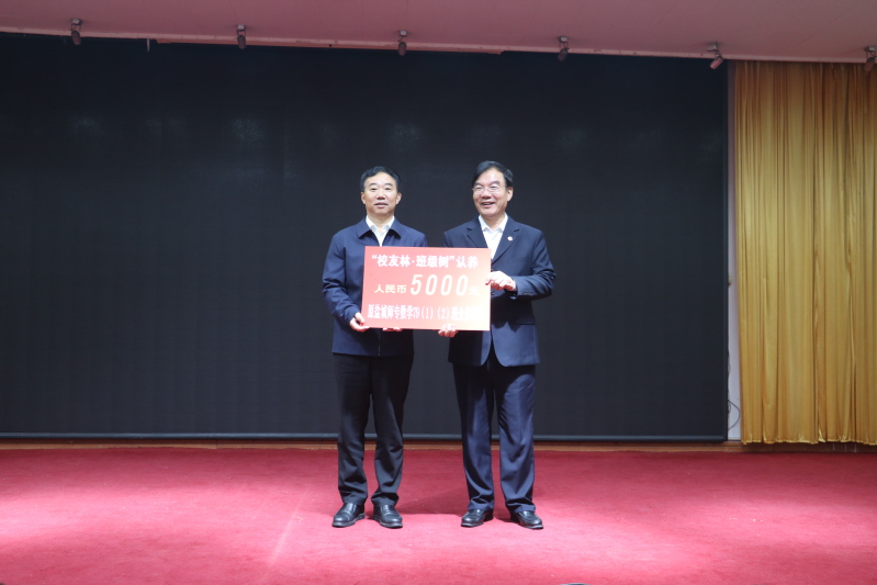 会上,数学与统计学院院长姜海波简要介绍学院近几年的发展情况。作为永久纪念,数学82届全体同学还在当年的教学楼前认养了一棵班级树,并向学校敬赠画作一副,以感恩母校多年的教育与关怀。