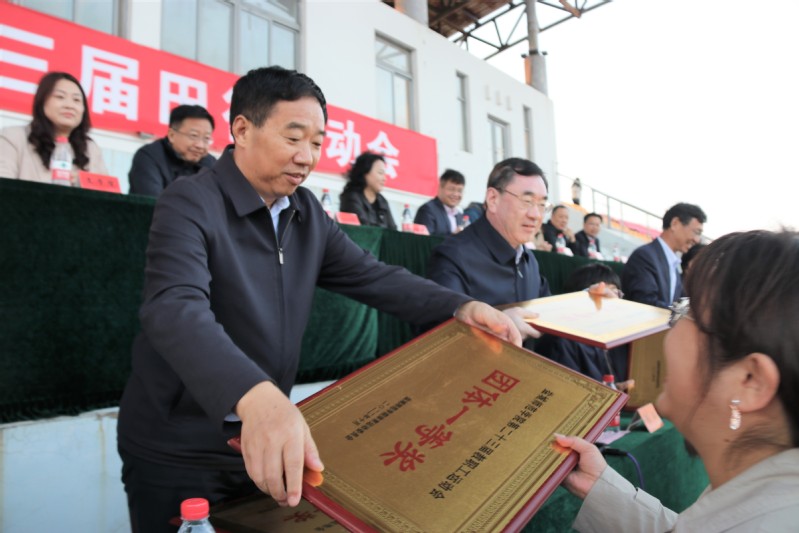 学校教务处处长、体育运动会委员会副主任岳峰宣读《伟德国际1949官网体育运动委员会关于表彰第二十三届田径运动会优秀运动员、优秀裁判员和体育道德风尚奖代表队的决定》。本届运动会赛事主管、体育学院党委书记祁龙祥宣布比赛结果。