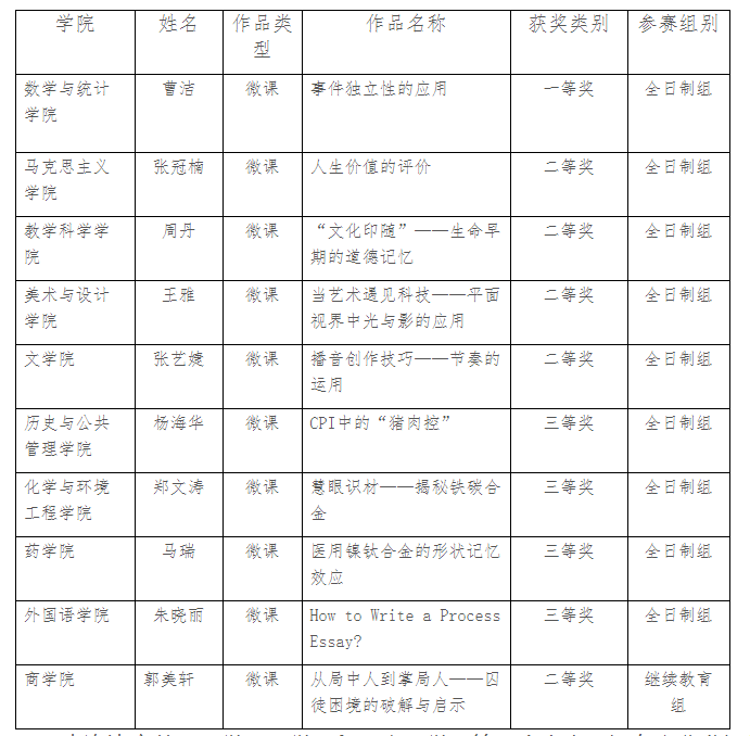近日,江苏省高校微课教学比赛组委会公布了2022年江苏省高等学校微课教学比赛获奖名单,伟德官网教师在此次比赛中再创佳绩,荣获一等奖1项、二等奖5项、三等奖4项。