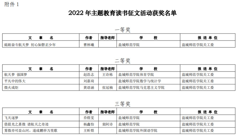 根据省教育系统关工委统一部署,伟德官网关工委在各二级学院中广泛开展《勋章》和《逐梦九天》读书活动,并以“平凡中的伟大”和“航天梦 强国梦”为主题开展征文活动。青年学子们踊跃投稿, 校关工委组织遴选出20篇优秀作品参加比赛。经省专家组多轮评审,伟德官网7名同学在此次征文活动中获奖,其中一等奖1名,二等奖3名,三等奖3名。