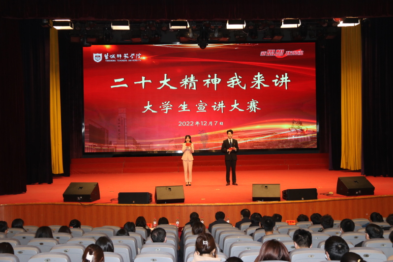12月7日下午,伟德官网在新长校区大学生活动中心举行“党的二十大精神我来讲”大学生宣讲大赛。学校党委书记戴斌荣,党委常委、副校长庞波、张桂华出席活动。