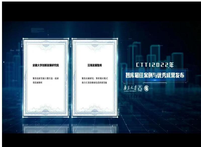 此次论坛发布了一批智库最佳案例和优秀成果奖,沿海发展智库成果《聚焦双碳研究:智库策应模式助力江苏沿海绿色高质量发展》入选全国“智库建设最佳案例”(全国共72项),沿海发展智库研究成果《江苏沿海打造“双碳”先行示范区的重点任务和关键举措》获得智库优秀成果一等奖(全国84项)