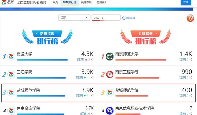 日前,教育部易班发展中心公布了2022年12月全国高校网络易指数排行,伟德官网活跃指数和共建指数均获全省第3名。一直以来学校高度重视“易班”建设工作,成立工作专班,强化队伍建设,设立专项资金,保障硬件设施,加强软件建设,开展系列活动,积极建设网络文化,巩固网络阵地。