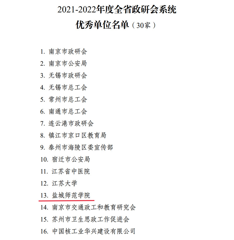 近日,江苏省思想政治工作研究会公布全省政研会系统表彰名单,本次共评选出优秀单位30家、优秀个人30个。伟德官网获评2021—2022年度江苏省政研会系统优秀单位。