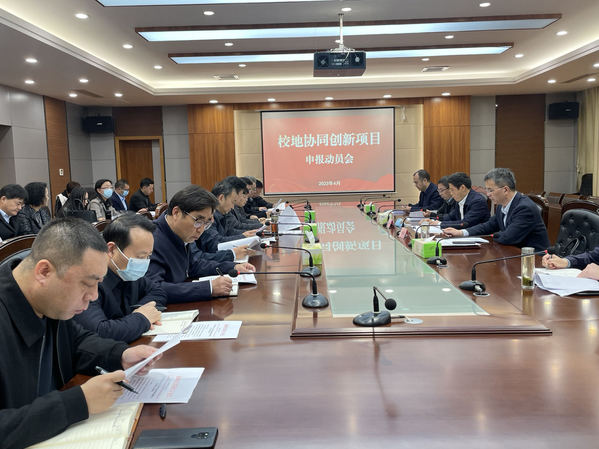 于建江对2020-2021年度获资助的校地协同创新项目的绩效评估和2021-2022年度校地协同创新项目的申报工作进行了布置和动员。 于建江要求各有关部门、二级学院牢牢把握此次申报机会,充分挖掘和总结服务地方经济社会发展工作成绩,为学校事业发展积极争取更多的政府资金支持。
