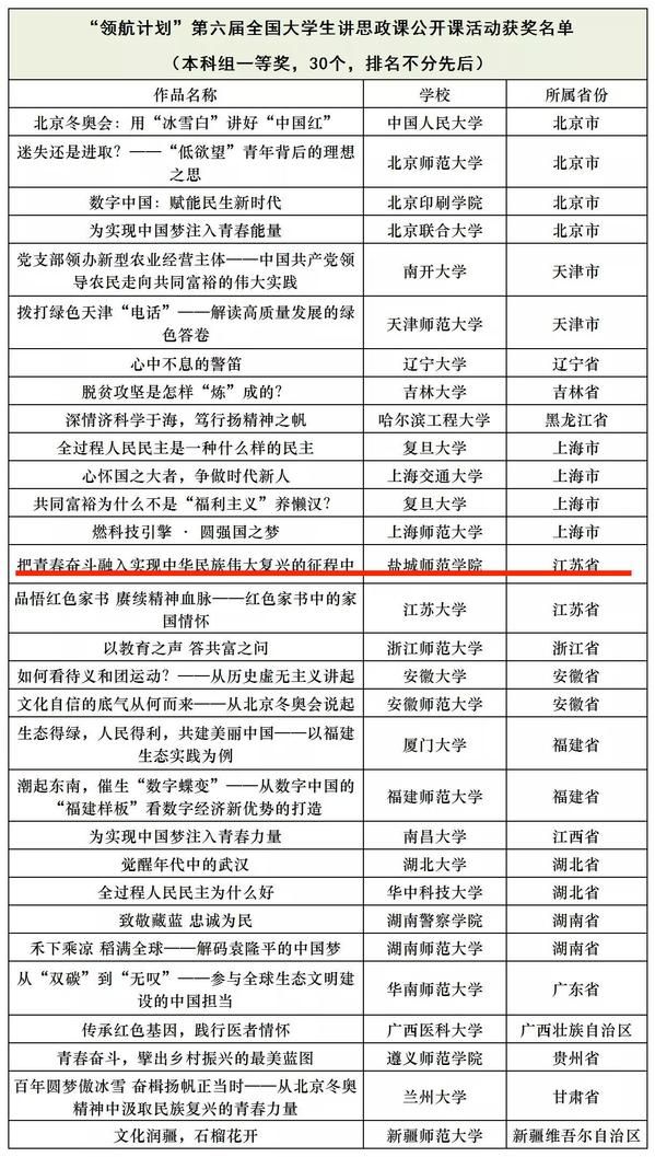 近日,由教育部高校思想政治理论课教学指导委员会主办、南开大学马克思主义学院承办的习近平新时代中国特色社会主义思想大学习领航计划系列主题活动之“青春献礼二十大·强国有我新征程”——第六届全国高校大学生讲思政课公开课展示活动公布获奖名单,伟德官网马克思主义学院选送的作品《把青春奋斗融入实现中华民族伟大复兴的征程中》荣获一等奖(江苏省本科组仅获2项一等奖)。